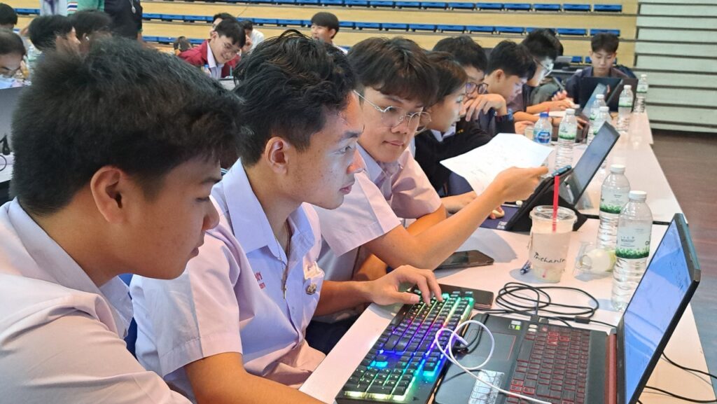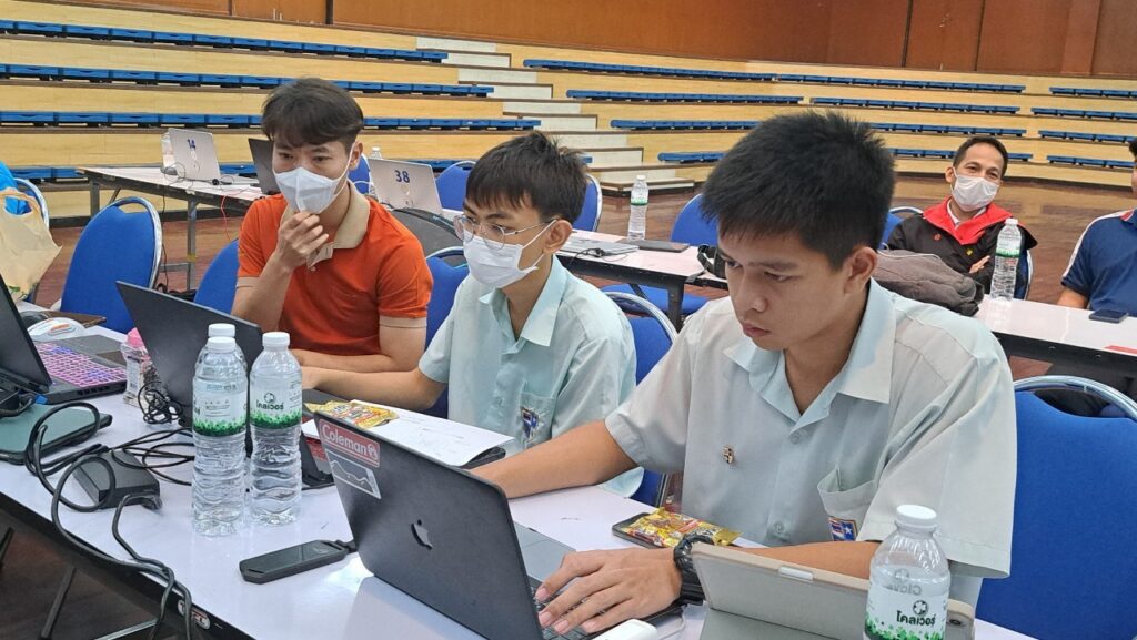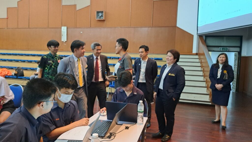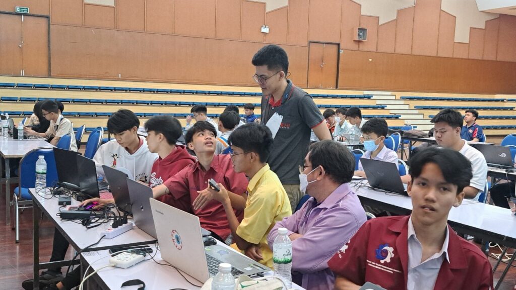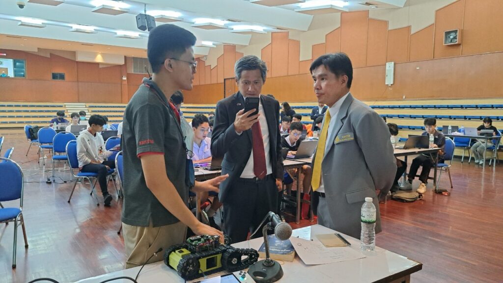 ศ.ดร.สุชาติ เซี่ยงฉิน อธิการบดี มหาวิทยาลัยเทคโนโลยีพระจอมเกล้าพระนครเหนือ (มจพ.) พร้อมด้วย ศ.ดร.สมฤกษ์ จันทรอัมพร รองอธิการบดีฝ่ายวิจัยและพัฒนาเทคโนโลยีสารสนเทศ ศ.ดร.เสาวณิต สุขภารังษี รองอธิการบดีฝ่ายวิชาการ ผศ.ดร.รักนรินทร์ แสนราช รองอธิการบดีฝ่ายการคลัง และผศ.ดร.สราวุฒิ สืบแย้ม ผู้ช่วยอธิการบดี ฝ่ายการคลังและกิจการทั่วไป เยี่ยมชมและให้กำลังใจแก่ทีมนักเรียนมัธยมที่ผ่านการคัดเลือกเข้าสู่รอบ Onsite จำนวน 20 ทีม โดยผ่านการคัดเลือกเข้าสู่รอบ Onsite จะเข้าอบรมเป็นจำนวน 2 วัน ในวันที่ 28-29 กุมภาพันธ์ 2567 ณ มหาวิทยาลัยเทคโนโลยีพระจอมเกล้าพระนครเหนือ ทีมใดที่เป็นผู้คว้ารางวัลชนะเลิศ Thailand Open Robotics Competition 2024 Junior Rescue จะได้เป็นตัวแทนของไทยในการแข่งขัน Robocup world ประเทศเนเธอร์แลนด์ งานนี้จัดโดยคณะวิศวกรรมศาสตร์ มจพ. และสถาบันพัฒนาทักษะดิจิทัลและเทคโนโลยี (IMAKE Innovation)