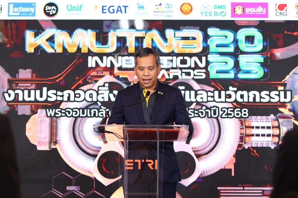 ศ.ดร.ธานินทร์ ศิลป์จารุ อธิการบดีมหาวิทยาลัยเทคโนโลยีพระจอมเกล้าพระนครเหนือ กล่าวเปิดงาน โครงการประกวดสิ่งประดิษฐ์และนวัตกรรมพระจอมเกล้าพระนครเหนือ ประจำปี 2568 (KMUTNB Innovation Awards 2025) ชิงถ้วยพระราชทาน สมเด็จพระกนิษฐาธิราชเจ้า กรมสมเด็จพระเทพรัตนราชสุดาฯ สยามบรมราชกุมารี ต่อเนื่องเป็นปีที่ 7 โดยประกวดรอบตัดสิน 12 ผลงานสุดท้าย จาก 60 ผลงานนวัตกรรมที่ผ่านรอบคัดเลือกจากทั่วประเทศ ในรูปแบบ Virtual Exhibition พร้อมการประกาศผลรางวัลถ้วยพระราชทานฯ ซึ่งการประกวดจัดแบ่งออกเป็น 2 ประเภท คือ 1) INNOVATIVE IDEAS (ID) ผลงานมีการแสดงแนวคิดเริ่มต้นโดยการประยุกต์ใช้หลักการพื้นฐานมาสู่การพัฒนาสิ่งประดิษฐ์ และ 2) INNOVATIVE PRODUCTS (IP) เมื่อวันศุกร์ที่ 27 มิถุนายน 2568