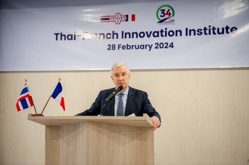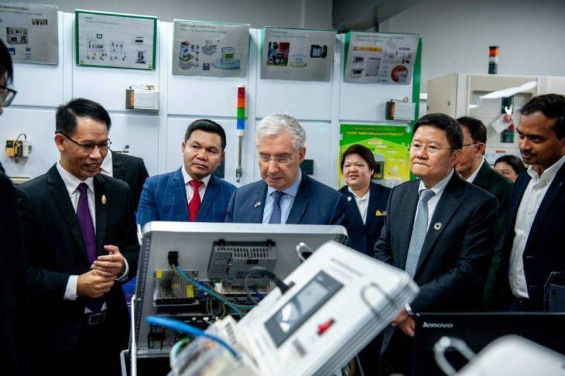 ศ.ดร.ธีรวุฒิ บุณยโสภณ นายกสภามหาวิทยาลัย ศ.ดร.สุชาติ เซี่ยงฉิน อธิการบดี มหาวิทยาลัยเทคโนโลยีพระจอมเกล้าพระนครเหนือ (มจพ.) เป็นประธานกล่าวเปิดศูนย์ความเป็นเลิศทางวิชาการ“TFII-Schneider Electric Center of Excellence” และได้รับเกียรติ H.E. Ambassador Jean-Claude Poimbœuf เอกอัครราชทูตฝรั่งเศสประจำประเทศไทย พร้อมด้วย ผศ.ดร.พรศักดิ์ ศรีสังสิทธิสันติ ผู้อำนวยการสถาบันนวัตกรรมเทคโนโลยีไทย-ฝรั่งเศส นายมงคล ตั้งศิริวิช ประธานคลัสเตอร์ ชไนเดอร์ อิเล็คทริค ประเทศไทย เมียนมาร์ และลาว ดร.ยศศิริ อาริยะกุล ผู้แทนมูลนิธิชไนเดอร์ อิเล็คทริค ประเทศไทยและลาว Mr. Arumugaraj Davitdurai Pandian ผู้อำนวยการ ASSIST ดร.นิรุตต์ บุตรแสนลี ผู้อำนวยการสำนักวิจัยและพัฒนาการอาชีวศึกษา สำนักงานคณะกรรมการการอาชีวศึกษา กล่าวแสดงความยินดีถึงความร่วมมือของศูนย์ความเป็นเลิศทางวิชาการ ในวันที่ 28 กุมภาพันธ์ 2567 ณ ชั้น 9 อาคารสำนักวิจัยวิทยาศาสตร์และเทคโนโลยี มจพ.