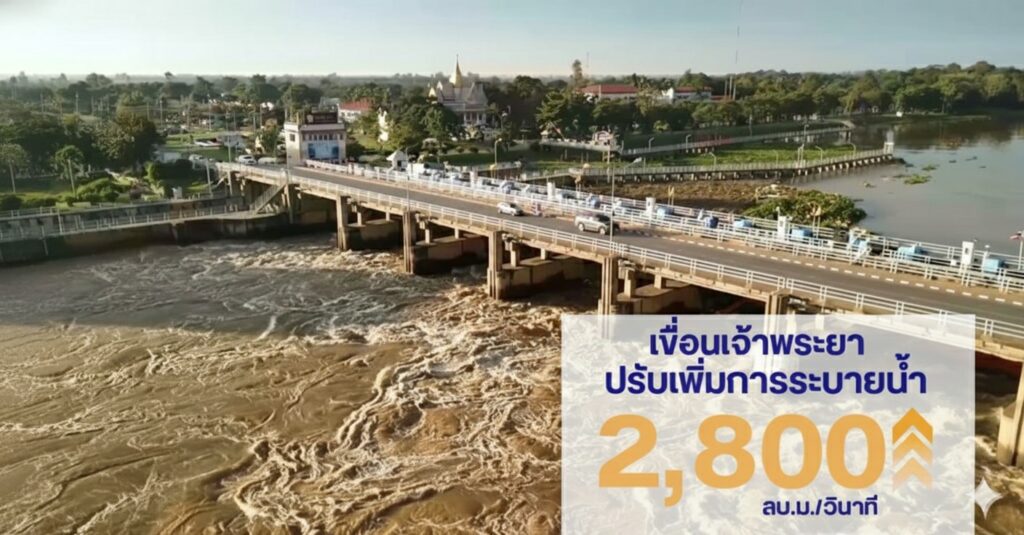 – ปรับเพิ่มการระบายน้ำผ่านเขื่อนเจ้าพระยาเป็น 2,800 ลบ.ม./วินาที